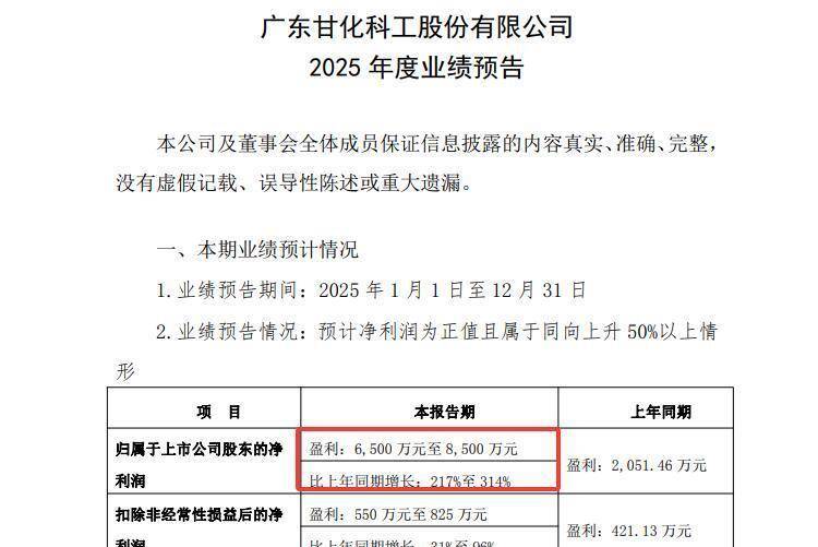 甘化科工,军工电子企业,预告增长超两倍。 它的业绩构成则更清晰地展示了什么是“非经常性损益”。 公告里列了三条:一是去年减持了持有的苏州锴威特半导体股票,赚了约3600万;二是拿到了业绩承诺补偿款2322万;三是并表一家新公司,带来了约1400万净利润。 这三笔钱加起来,就对总利润构成了巨大影响。 但这三件事,减持股票、拿补偿款、并表,都和它日常造电源、做军工配套的主营业务关系不大。 今年有了,明年还能复制吗?